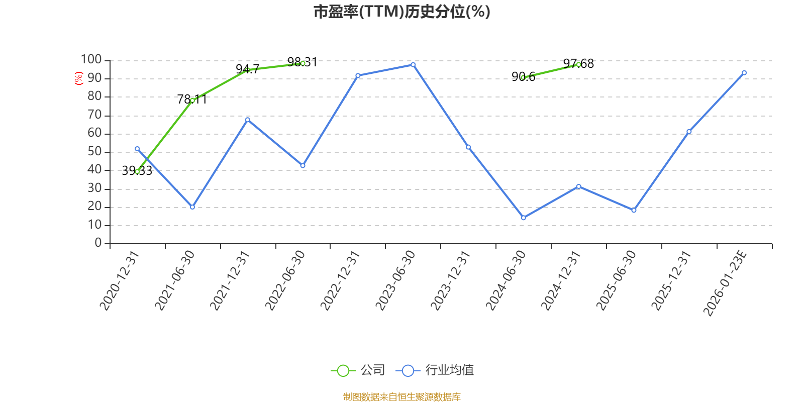 市盈率、市净率为负时,不显示当期分位数,会导致折线图中断。