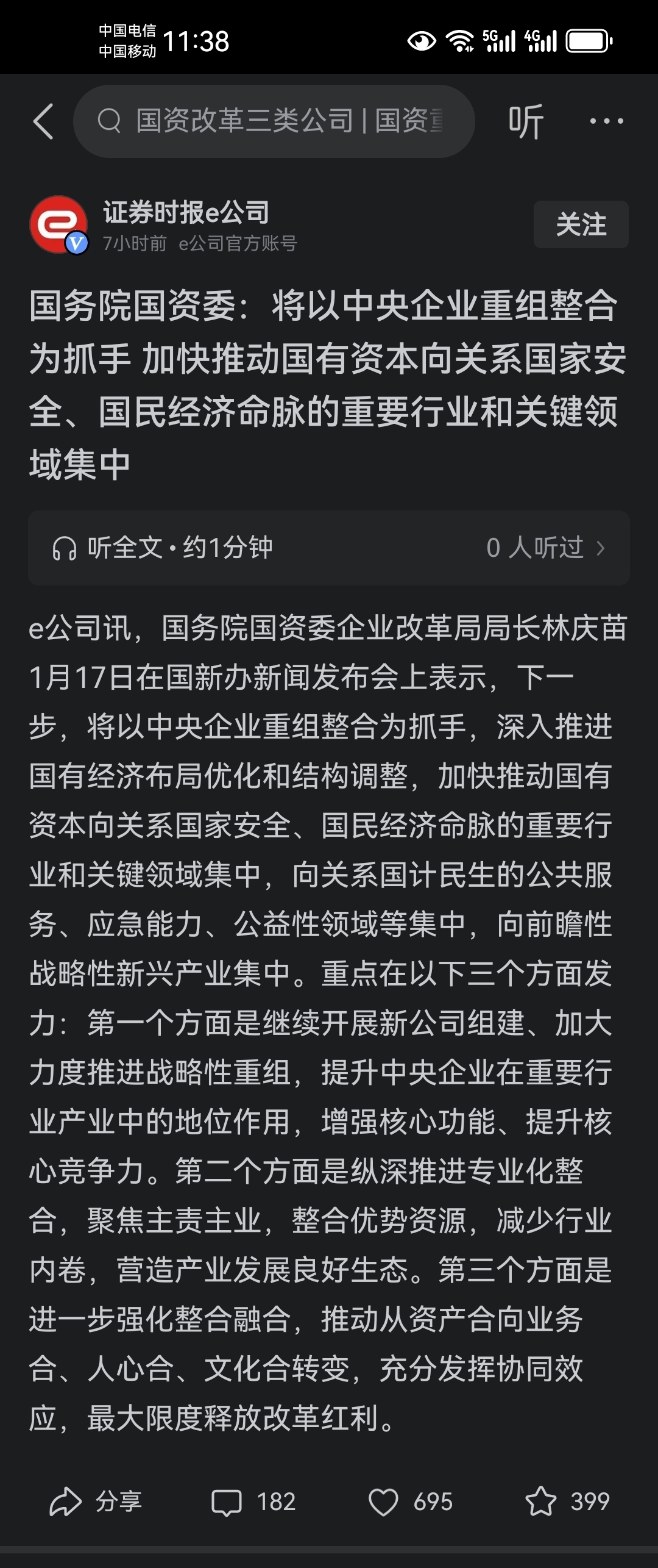 $湖南天雁(SH600698)$ 国务院国资委:将以中央企业重组整合为抓手 加快推动国有资本向关系国家安全、国民经济命脉的重要行业和关键领域集中