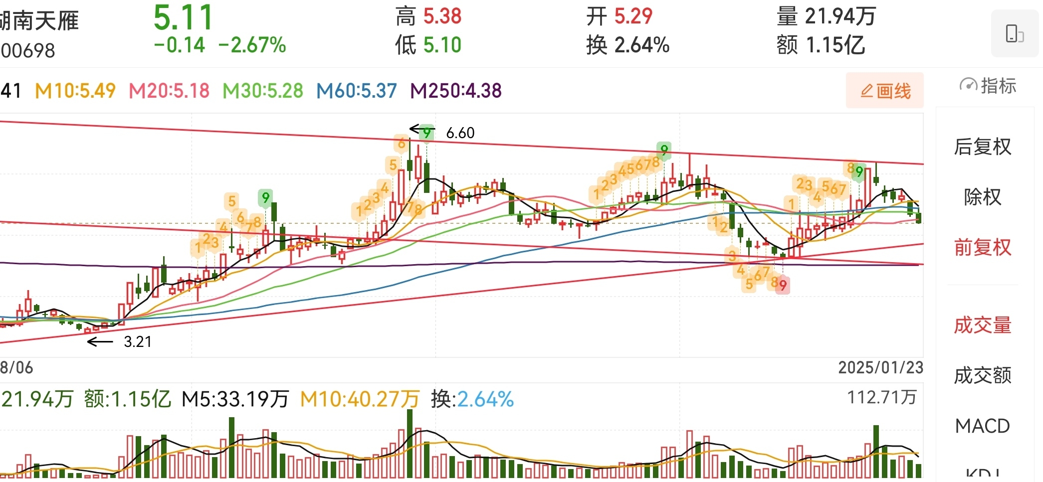 $湖南天雁(SH600698)$ 该股还在五浪调整,调整还末结束。