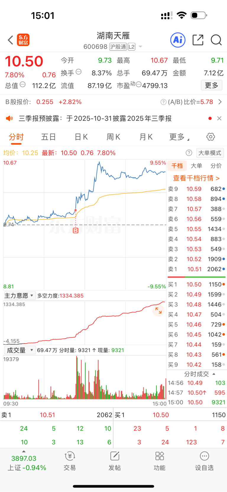 $湖南天雁(SH600698)$ 今天能保本全靠你。