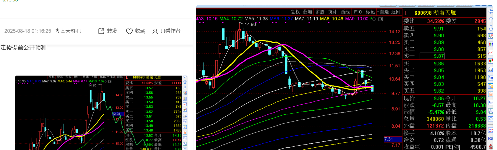 湖南天雁在两个月前就见了大顶了,走势在两个月前股王就精确提前预测到了