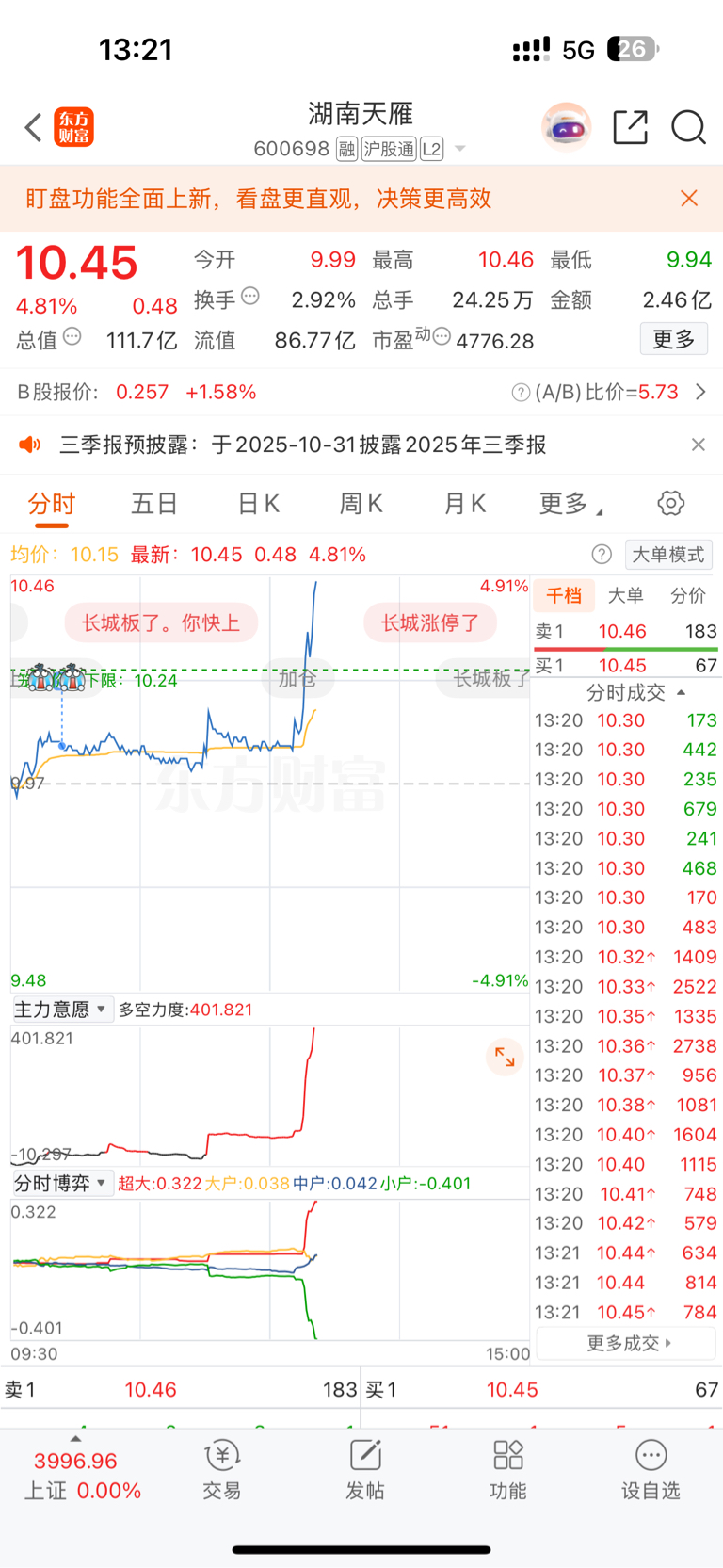 $湖南天雁(SH600698)$ 早上一个点做 t 的集合了