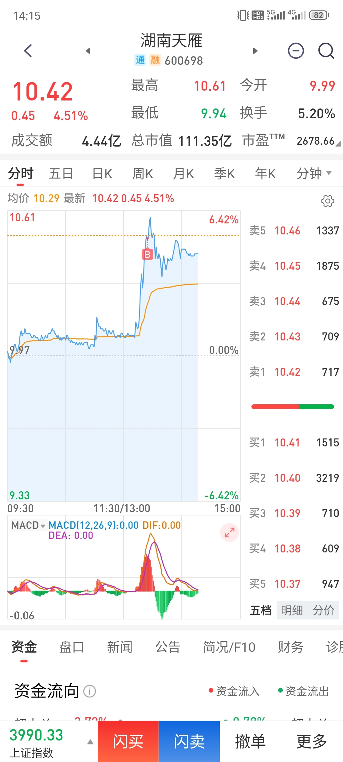 $湖南天雁(SH600698)$ 我跑进来吃奥利给?