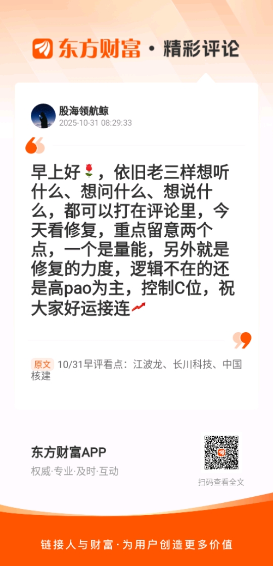 ,依旧老三样想听什么、想问什么、想说什么,都可以打在评论里,今天看修复,重点留意两个点,一个是量能,另外就是修复的力度,逻辑不在的还是高pao为主,控制C位,祝大家好运接连