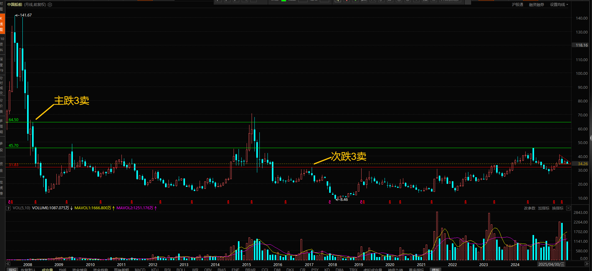 中国船舶,主跌3卖和次跌3卖,关键点位