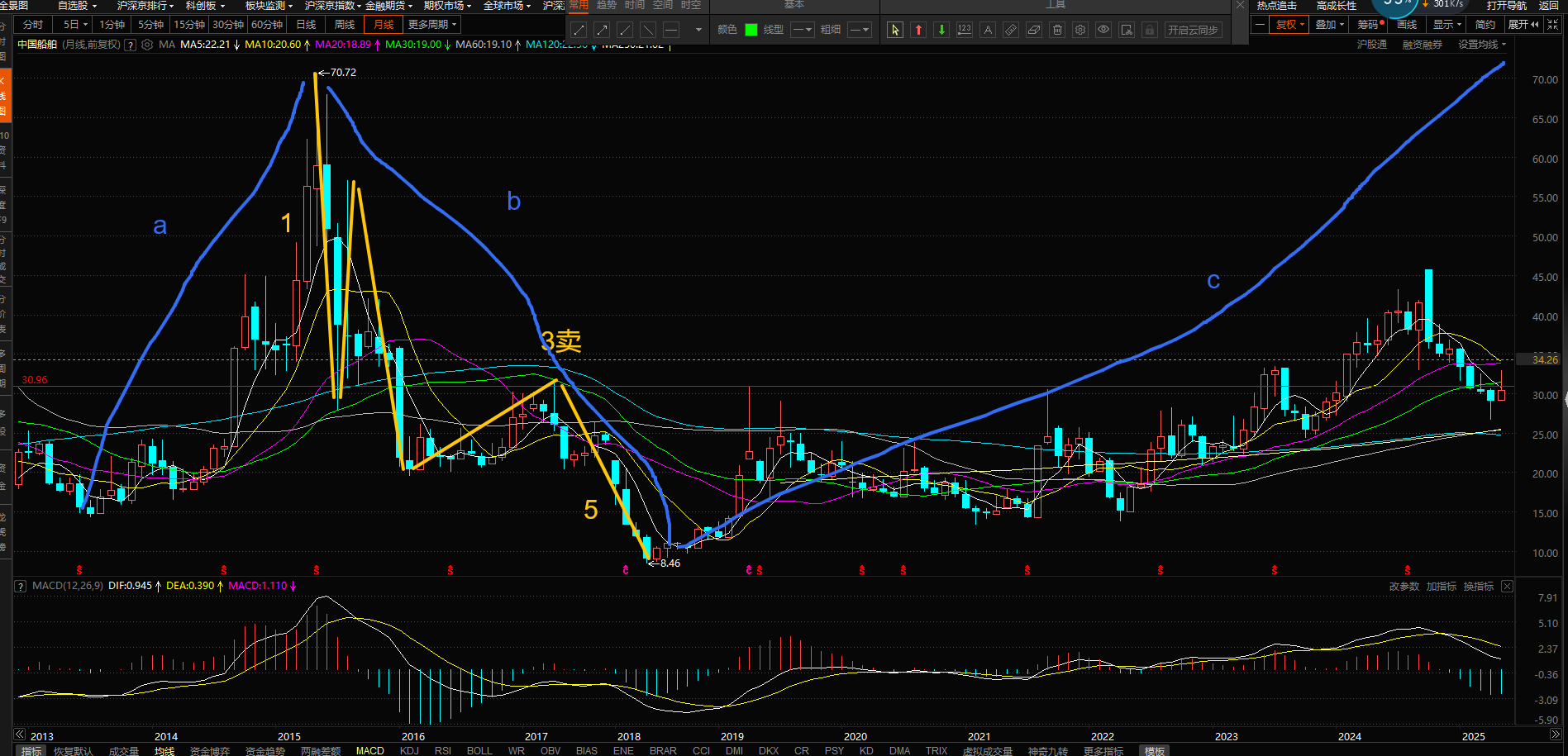 中国船舶,目前已经突破3卖,预示着,月线级别C浪主升?