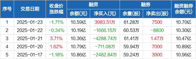 均胜电子:融资净买入3983.51万元,融资余额10.59亿元(01-23)