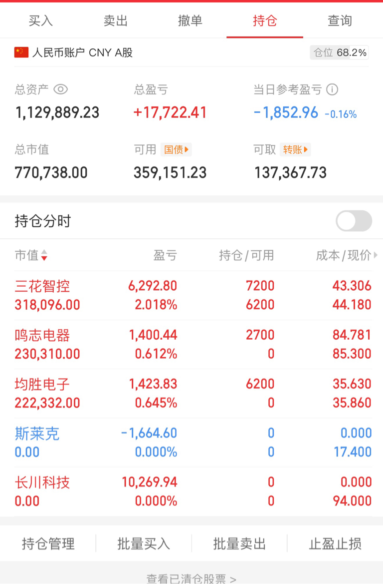 调仓清:长川科技,斯莱克锁:三花智控开:均胜电子、鸣志电器