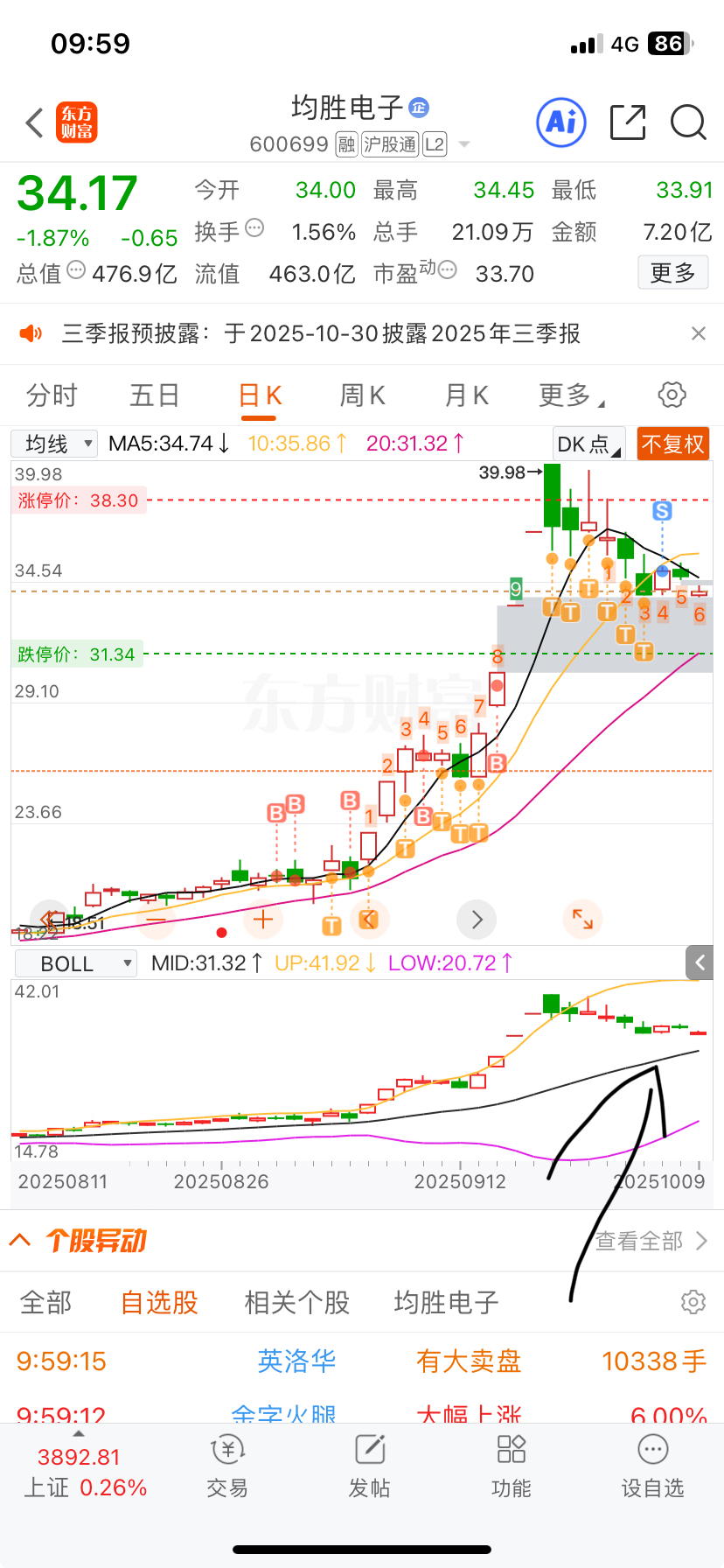 $均胜电子(SH600699)$ 不用慌,踩到布林中轨会有反弹。