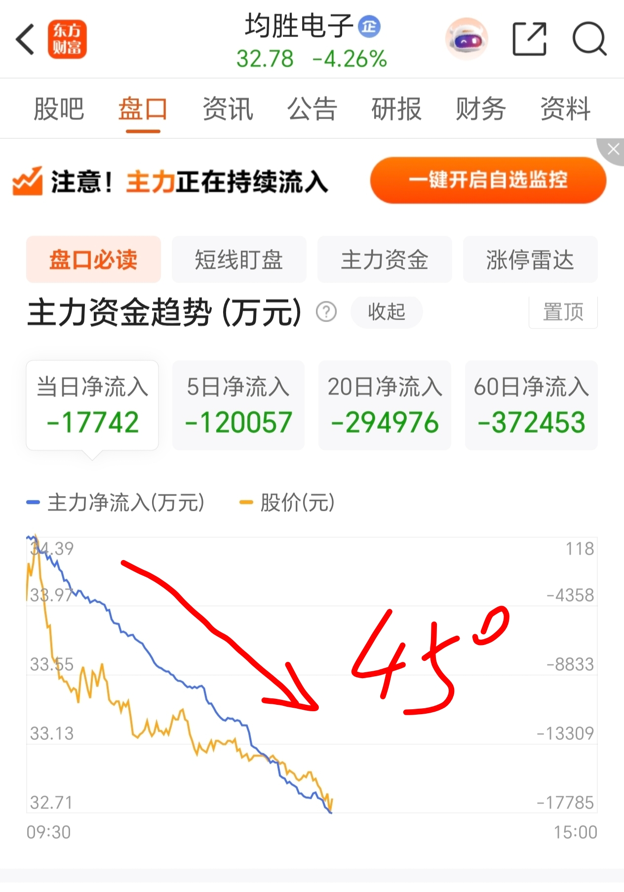 标准45∠下跌,资金跑得比谁都快!还不快跑!!!等什么?