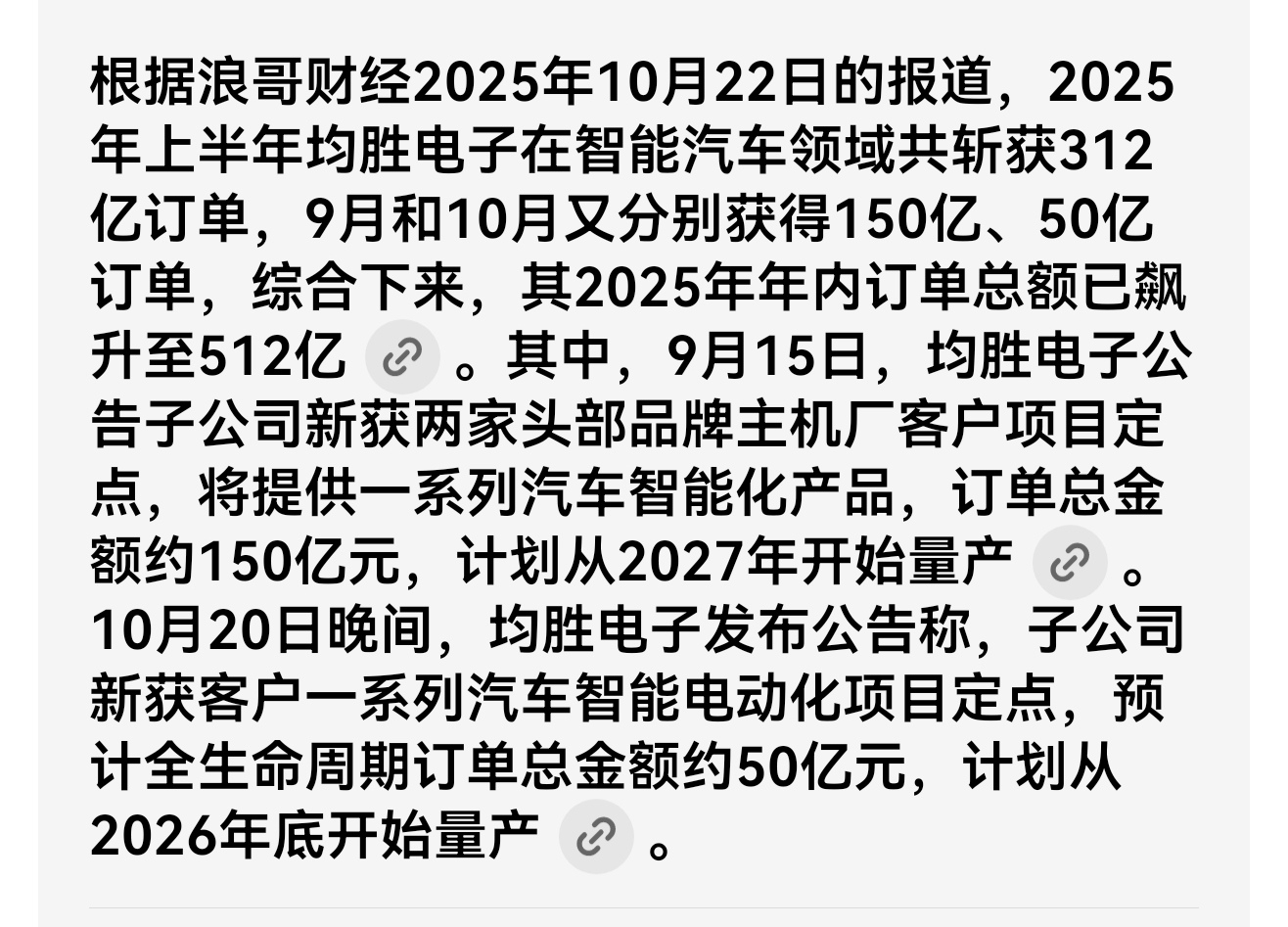 有实力的公司(均胜电子),订单就是多,源源不断!均胜电子上千亿市值是完全可以的!