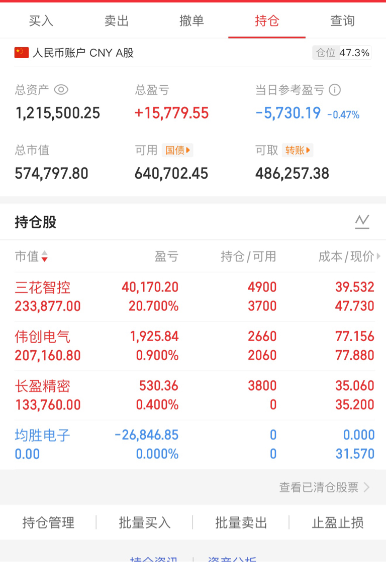 调仓清:均胜电子锁:三花智控、伟创电气开:长盈精密