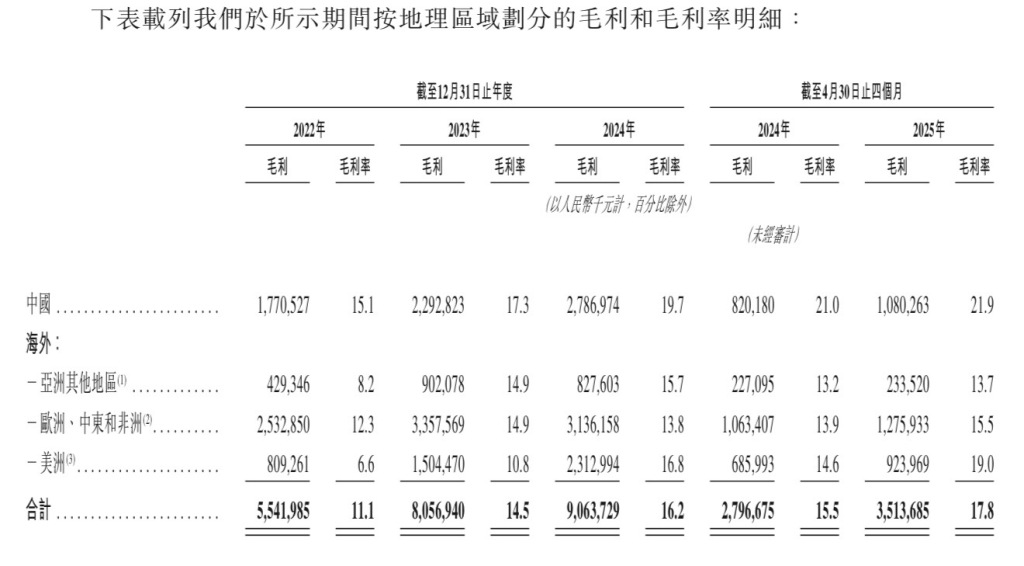 不过其海外业务的毛利率不及中国市场。招股书显示,自2022年到2025年前4个月,均胜电子在海外的毛利率水平虽然整体呈上升趋势,但包括亚洲其他地区,欧洲、中东和非洲以及美洲在内的几大市场毛利率均与中国市场有不小差距。
