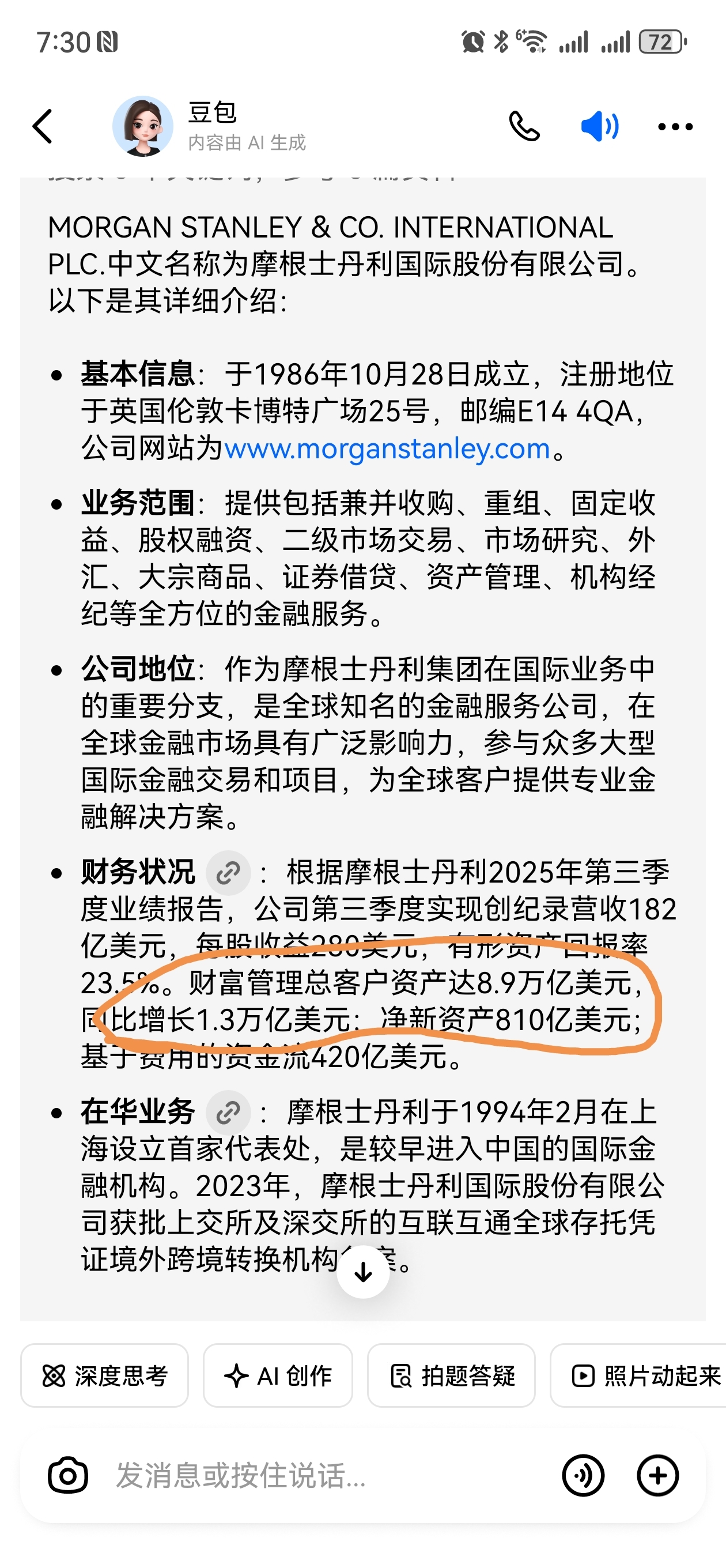 MORGANSTANLEY&CO.INTERNATIONALPLC.资产管理规模