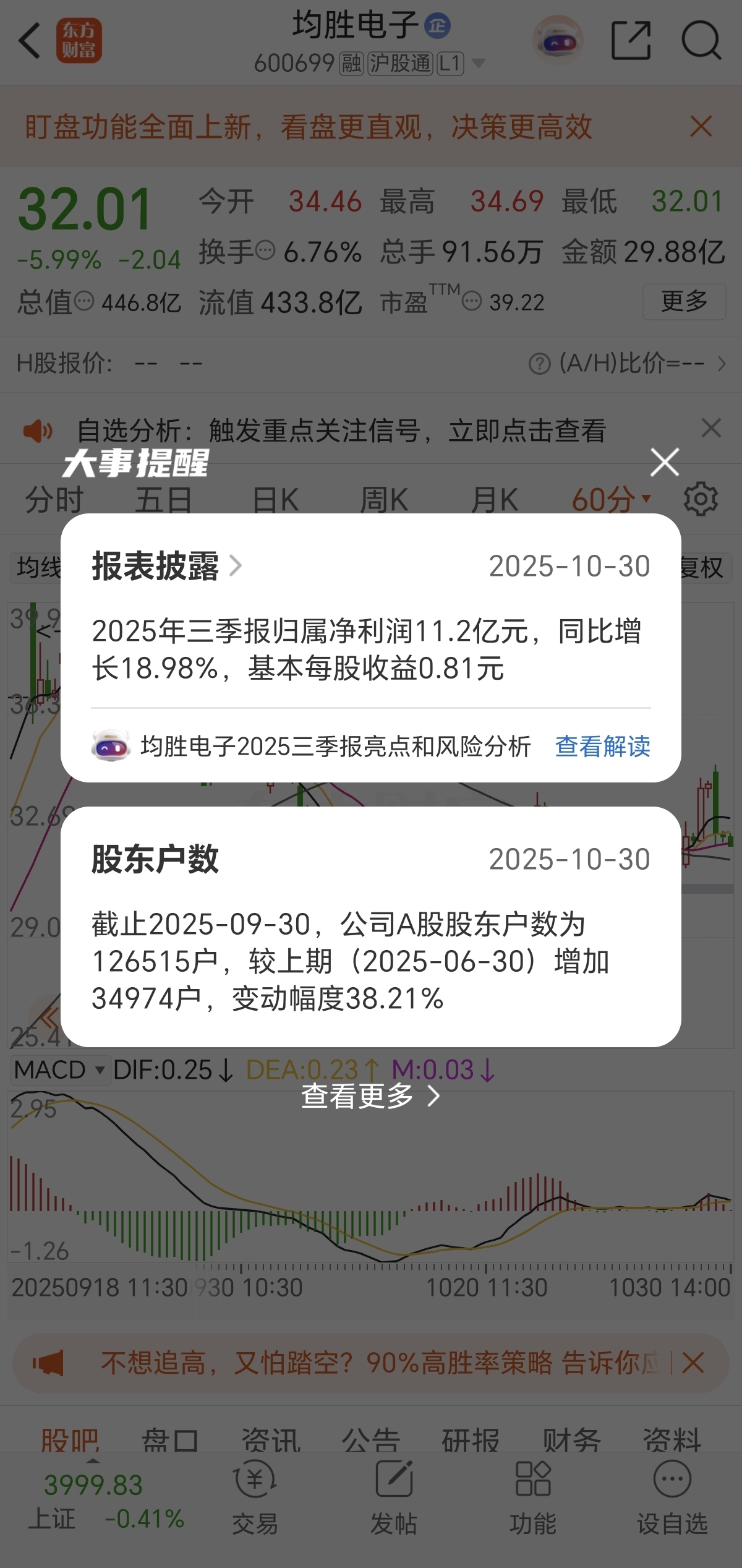 $均胜电子(SH600699)$ 散户多了38%