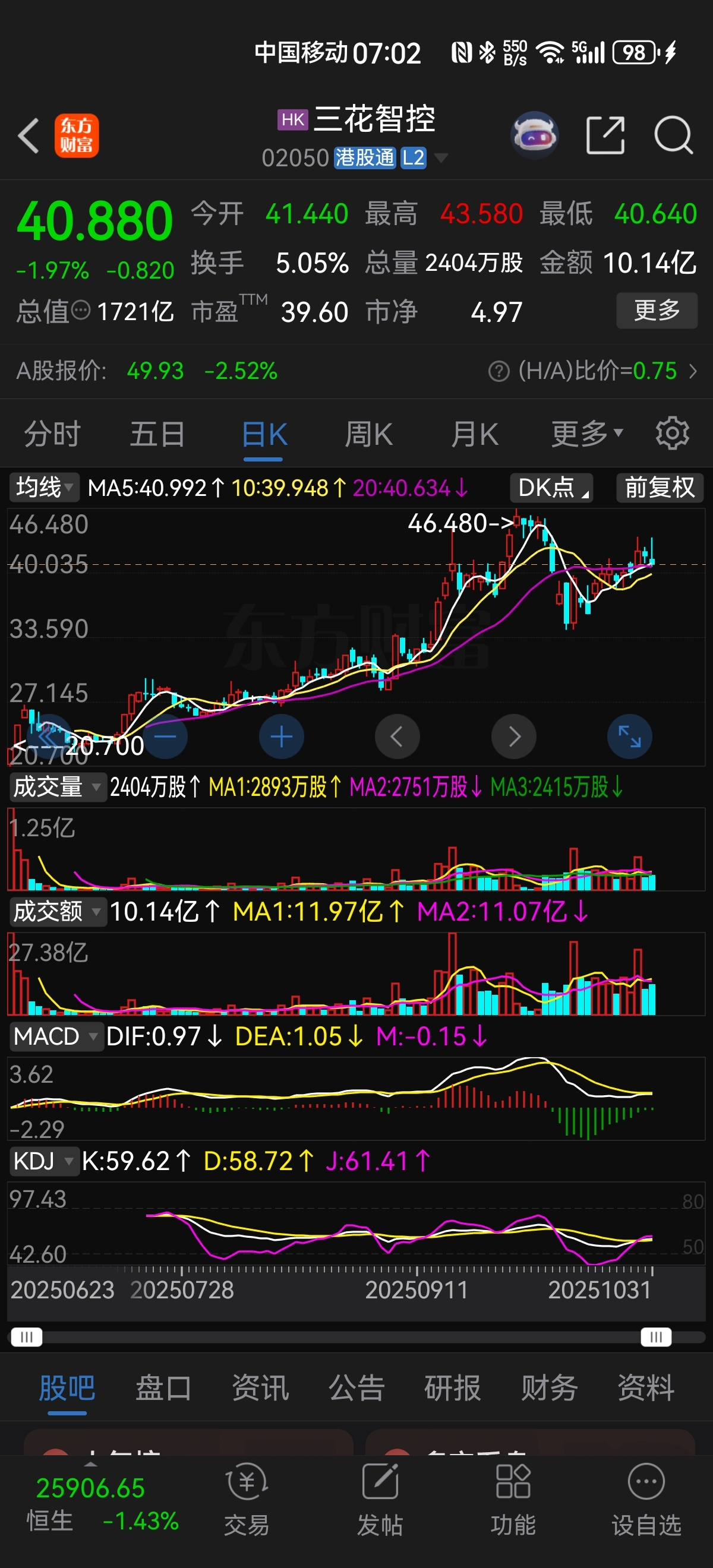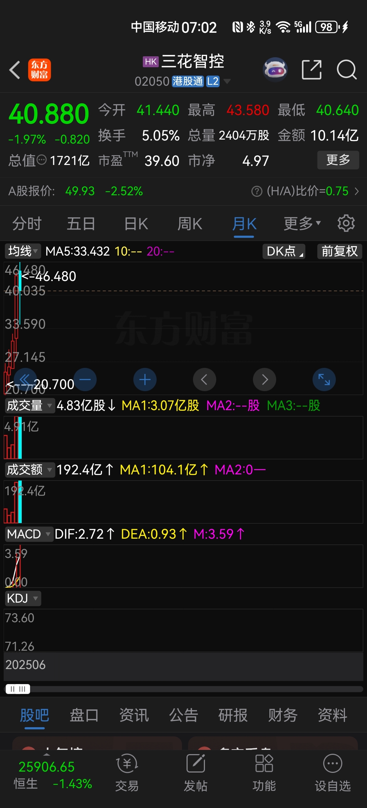 三花智控港股上市运行图(日周月K线图),对均胜电子港股上市(11月6日)的运行轨