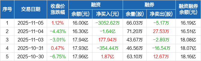 均胜电子:融资净偿还3052.62万元,融资余额16亿元(11-05)