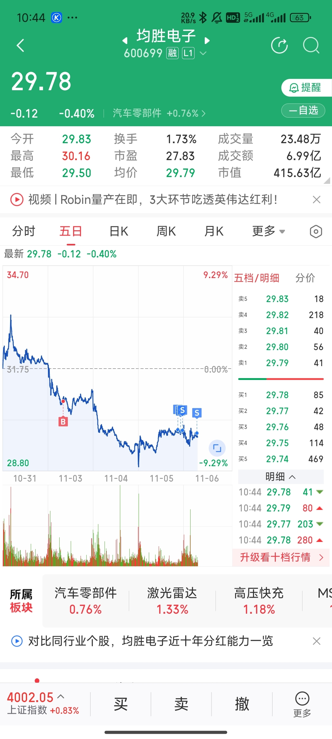 $均胜电子(SH600699)$ 卖完,清仓了,好在昨天卖三分之二,今天买特高压涨停赚回来了