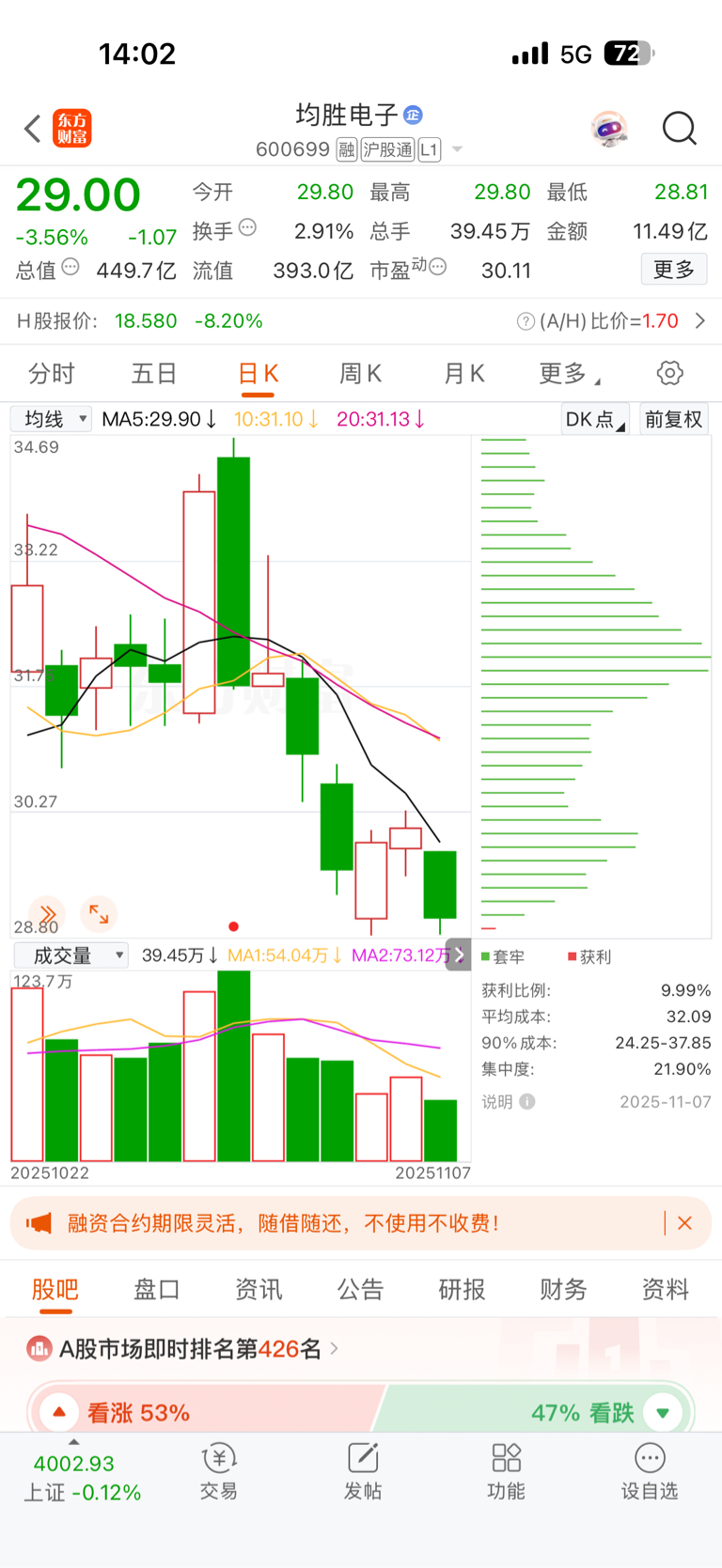 $均胜电子(SH600699)$ 还有百分之十的人没被套主力在加把劲吧 我已经躺平