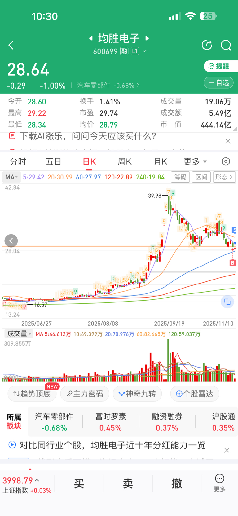$均胜电子(SH600699)$ 是我菜,投降输一半