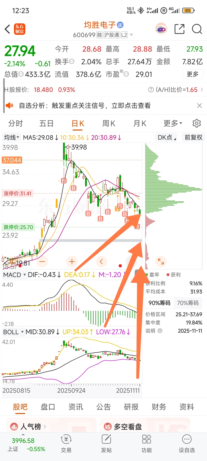 28.20补了,然后呢,筹码分布不均,套牢盘太多了,想要涨,只有等套牢的割肉了,下方收集足够多的筹码才有涨的可能。