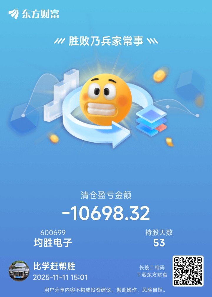 温馨提示: 1.根据《证券法》规定,禁止编造、传播虚假信息或者误导性信息,扰乱证券市场;2.用户在本社区发表的所有资料、言论等仅代表个人观点,与本网站立场无关,不对您构成任何投资建议。用户应基于自己的独立判断,自行决定证券投资并承担相应风险。《东方财富社区管理规定》