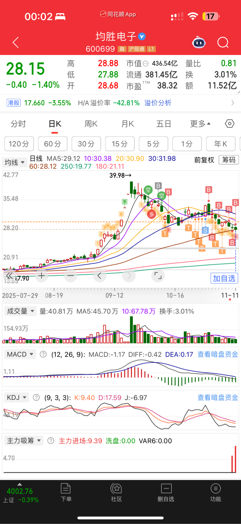 $均胜电子(SH600699)$ 跌吧跌吧,一直跌我就一直买,看你还能跌到20去?