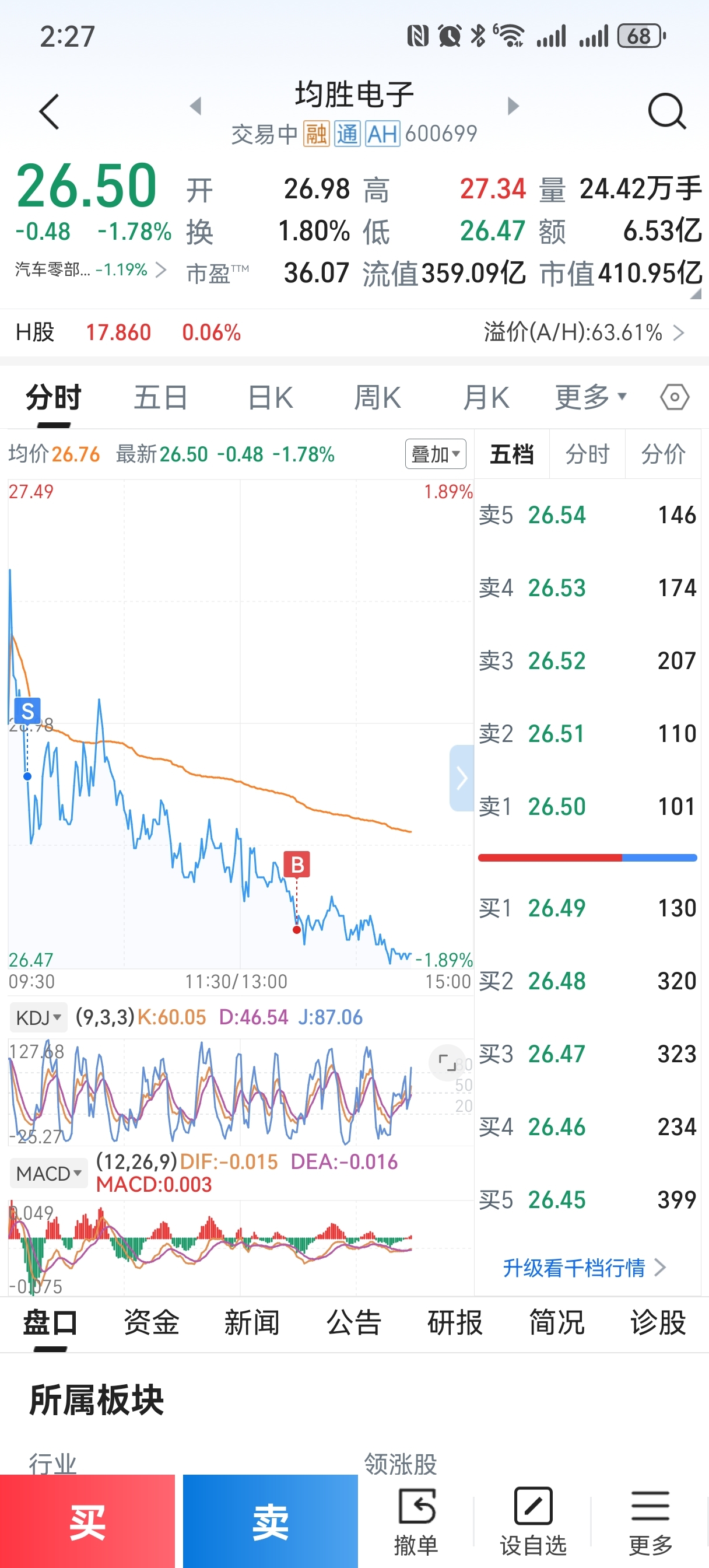 $均胜电子(SH600699)$ 恶庄砸没有关系,每天做个小T,一样降成本。一起耗吧
