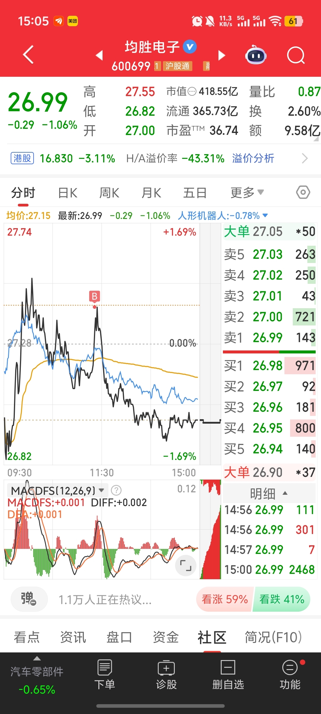 $均胜电子(SH600699)$ 这周30,我来接盘