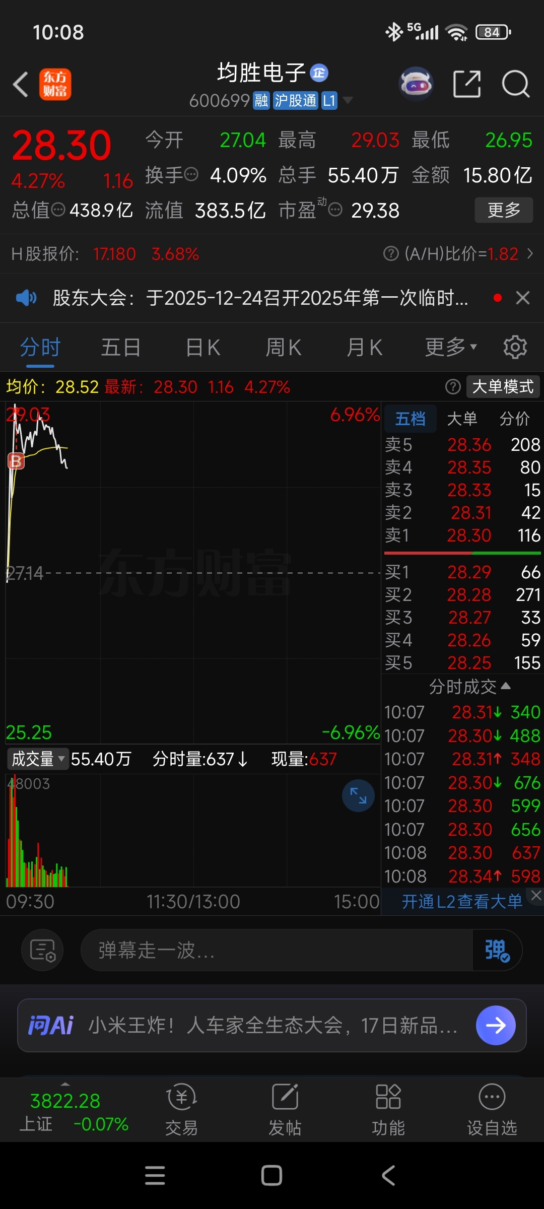 $均胜电子(SH600699)$ 改不了爱追高的老毛病