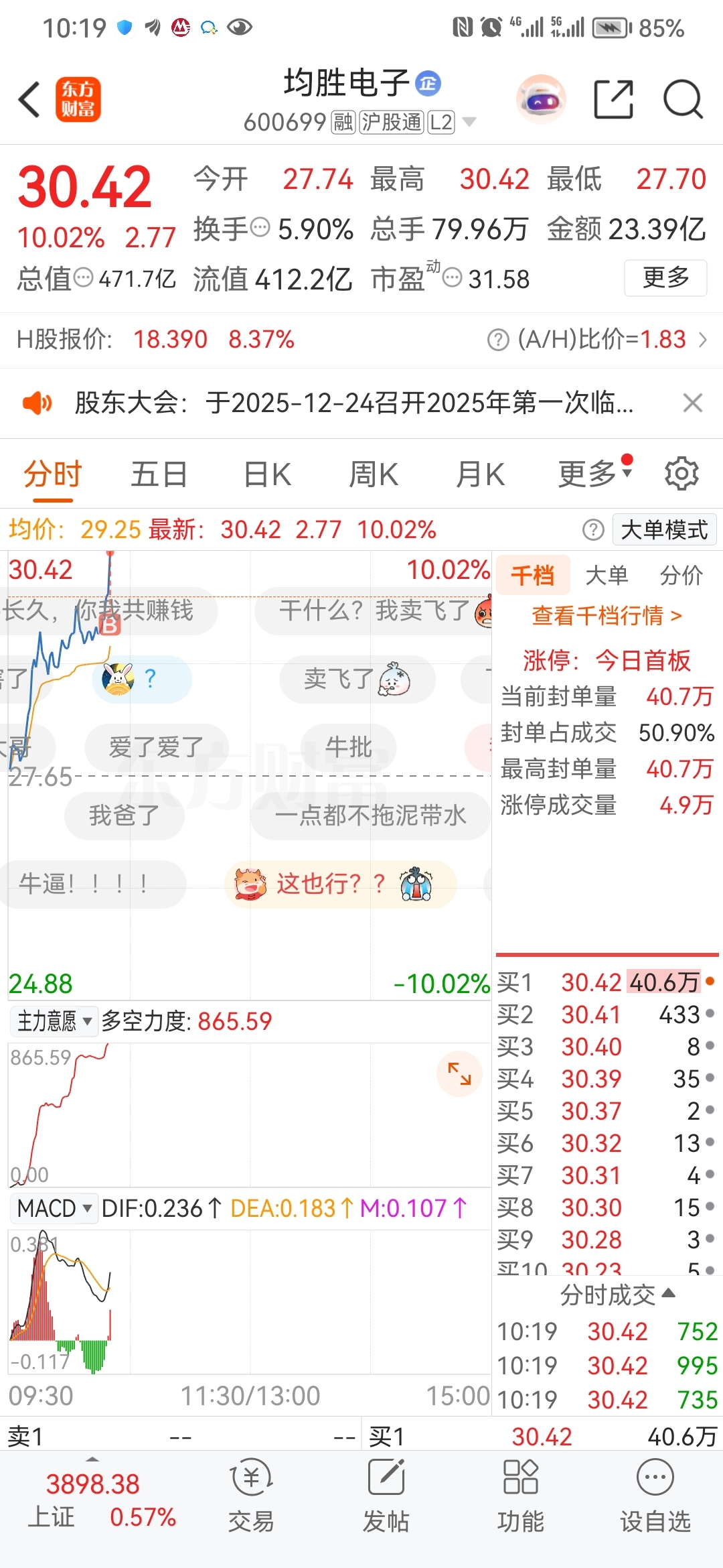$均胜电子(SH600699)$ 打板成功,我是小天才。