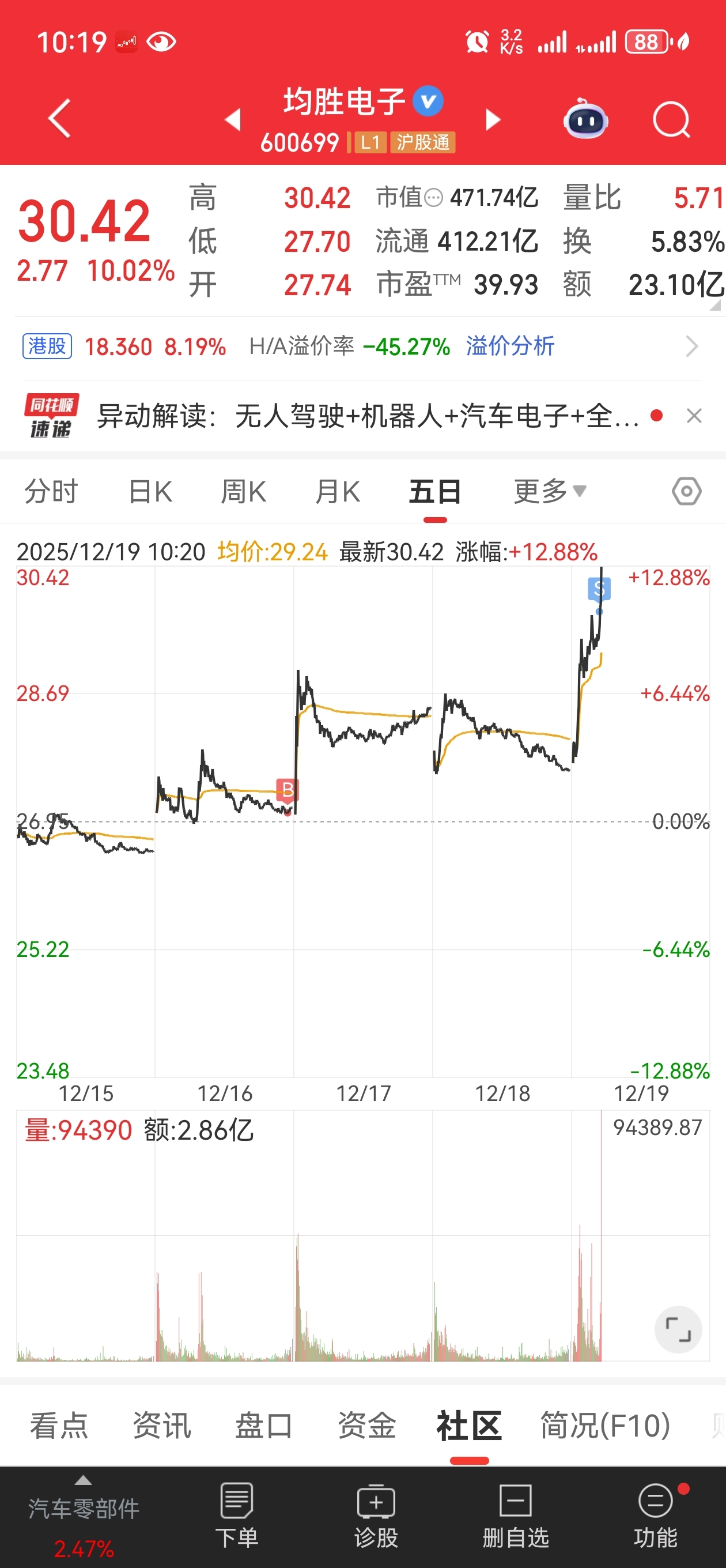 $均胜电子(SH600699)$ 板前卖了,虽然说又炸板了,但是希望能回封,祝大家吃大肉