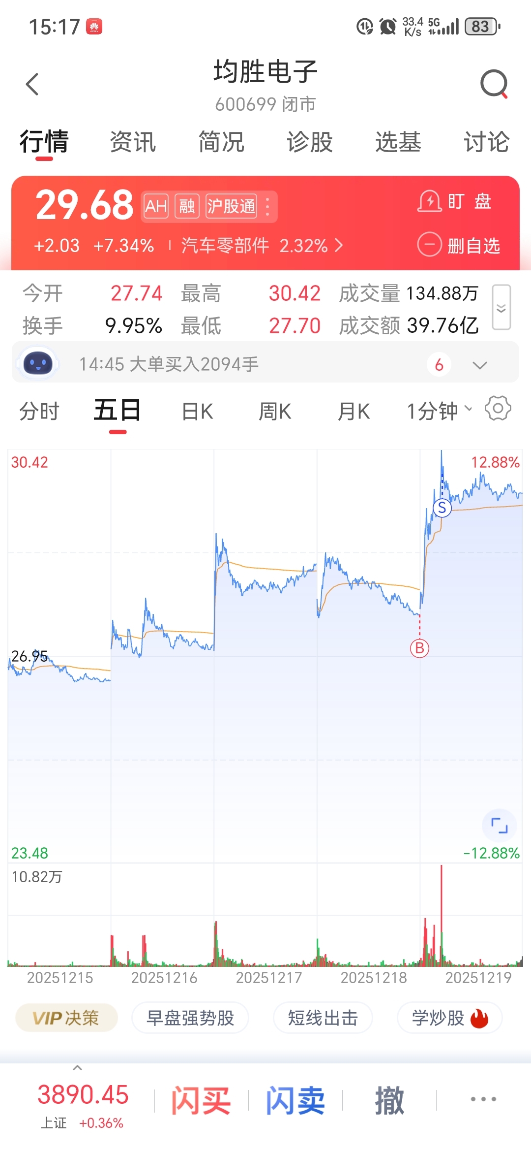$均胜电子(SH600699)$ 总感觉今天卖飞了,这均线一直没破