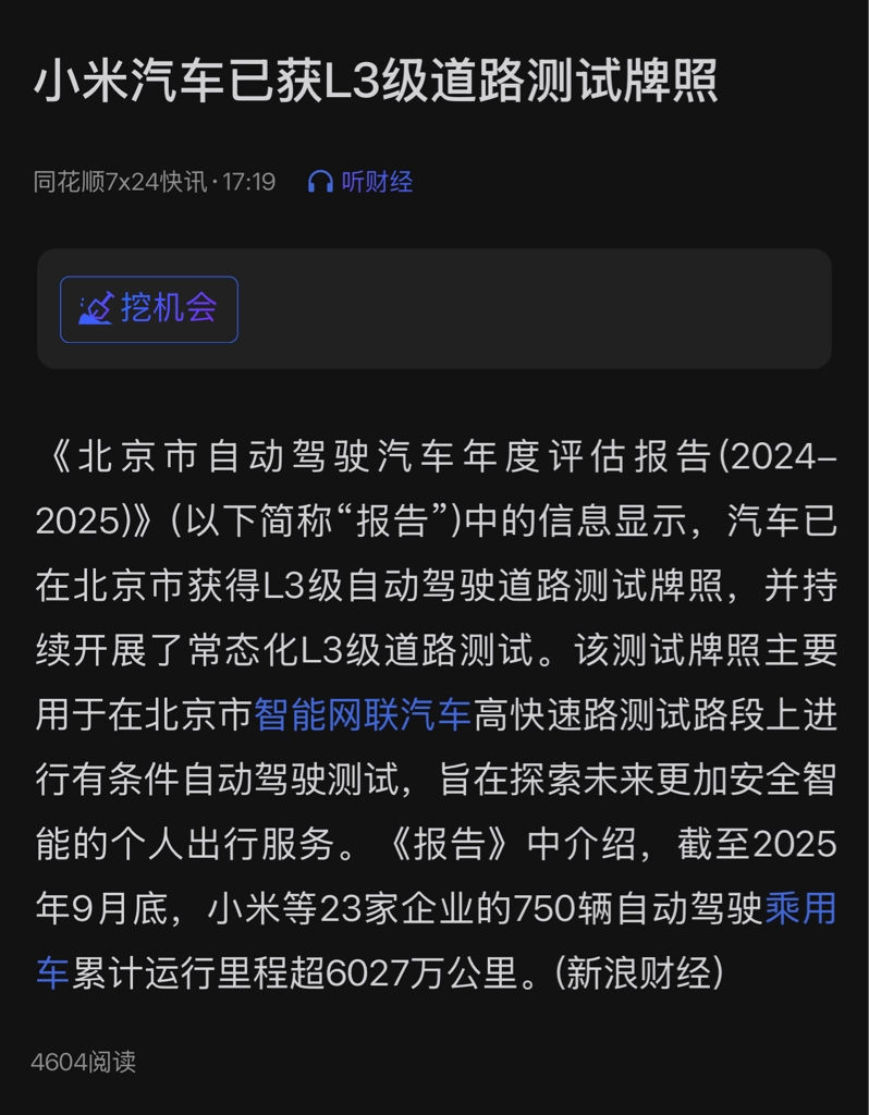 今天整个汽车板块都在涨,尤其是有l3相关产业链的,小鹏港股收盘7个多点。我对l3