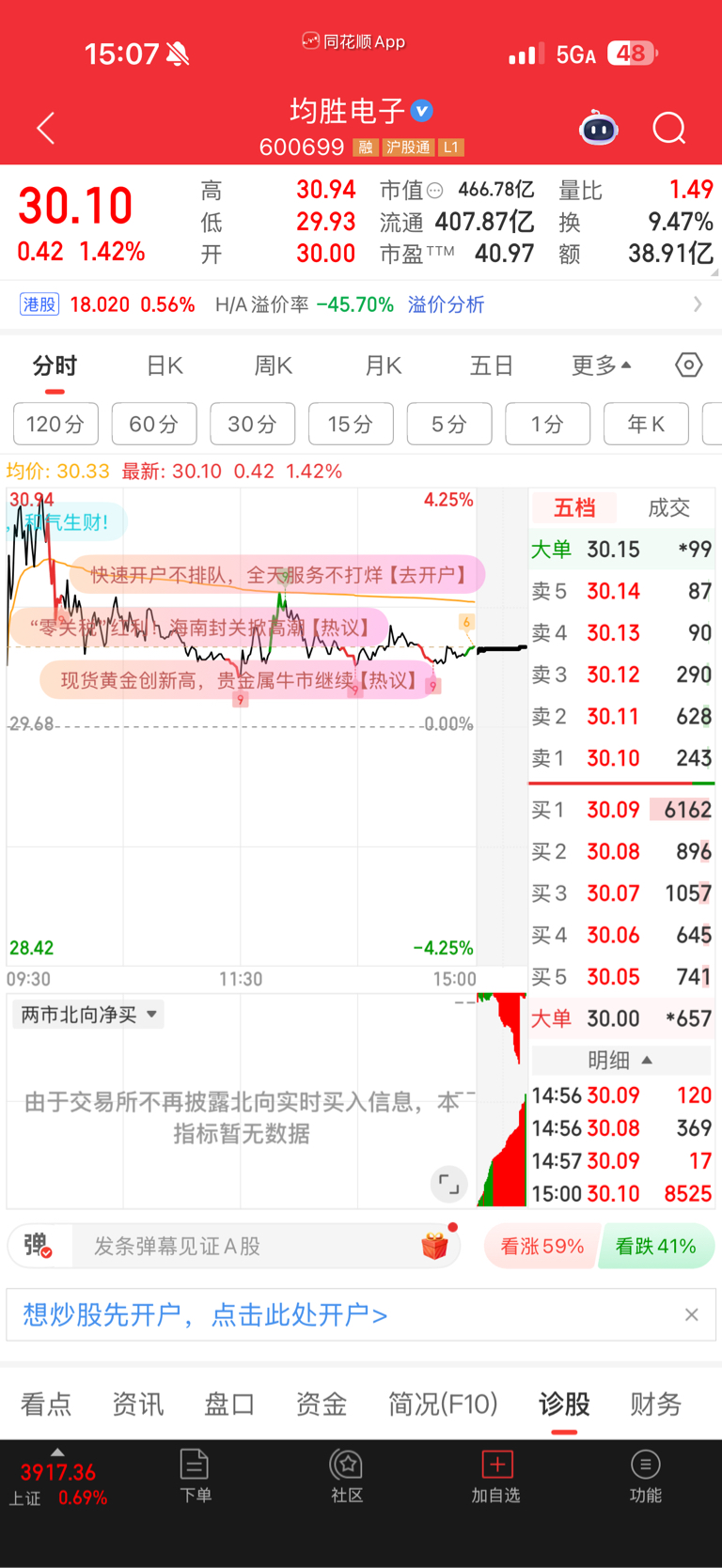 尾盘全是抢筹的慌啥今天能守住30的生命线很不错了还得洗一两天我看好明天冲高回落做