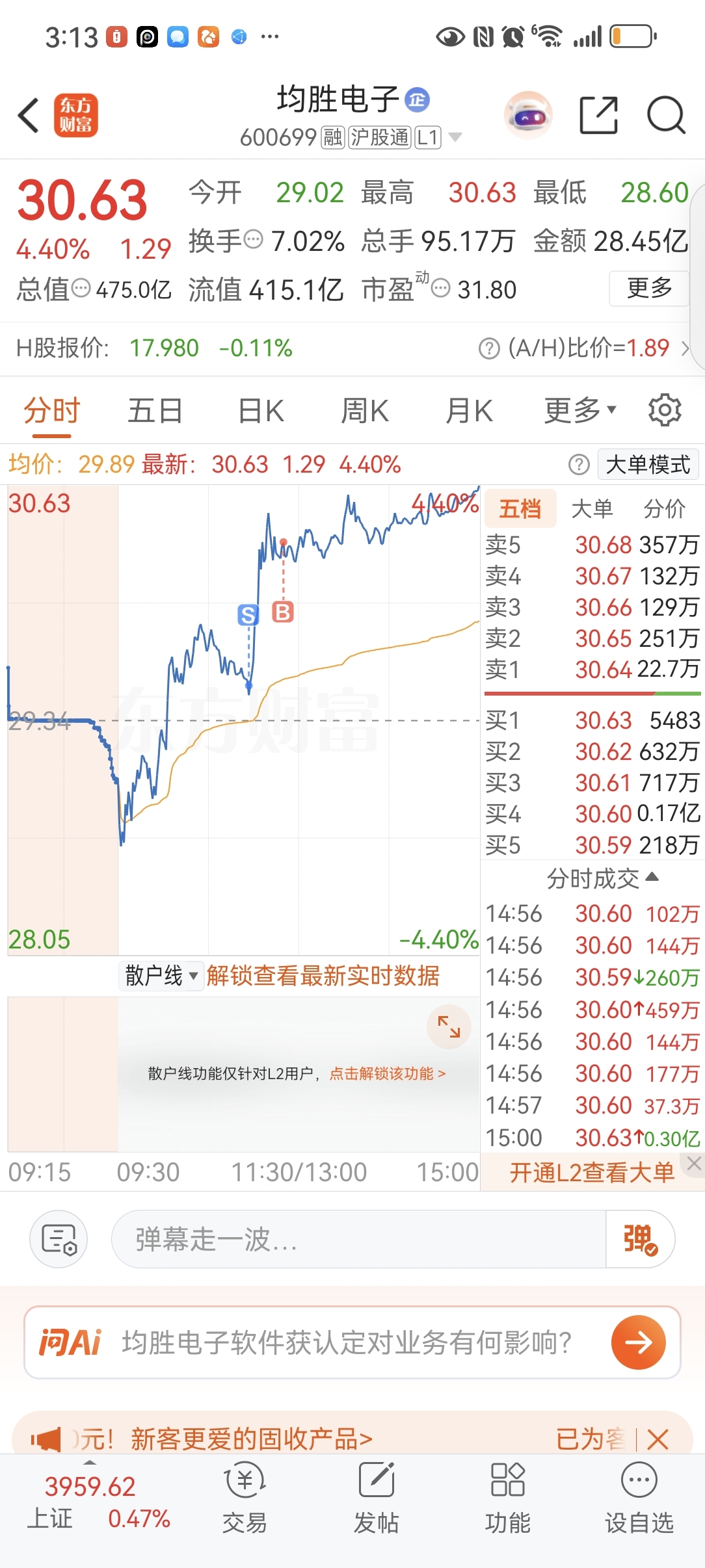 $均胜电子(SH600699)$ 妈的,就等我卖那600手