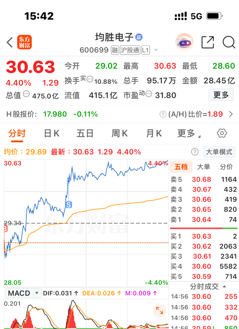 $均胜电子(SH600699)$ 小 t 五个点