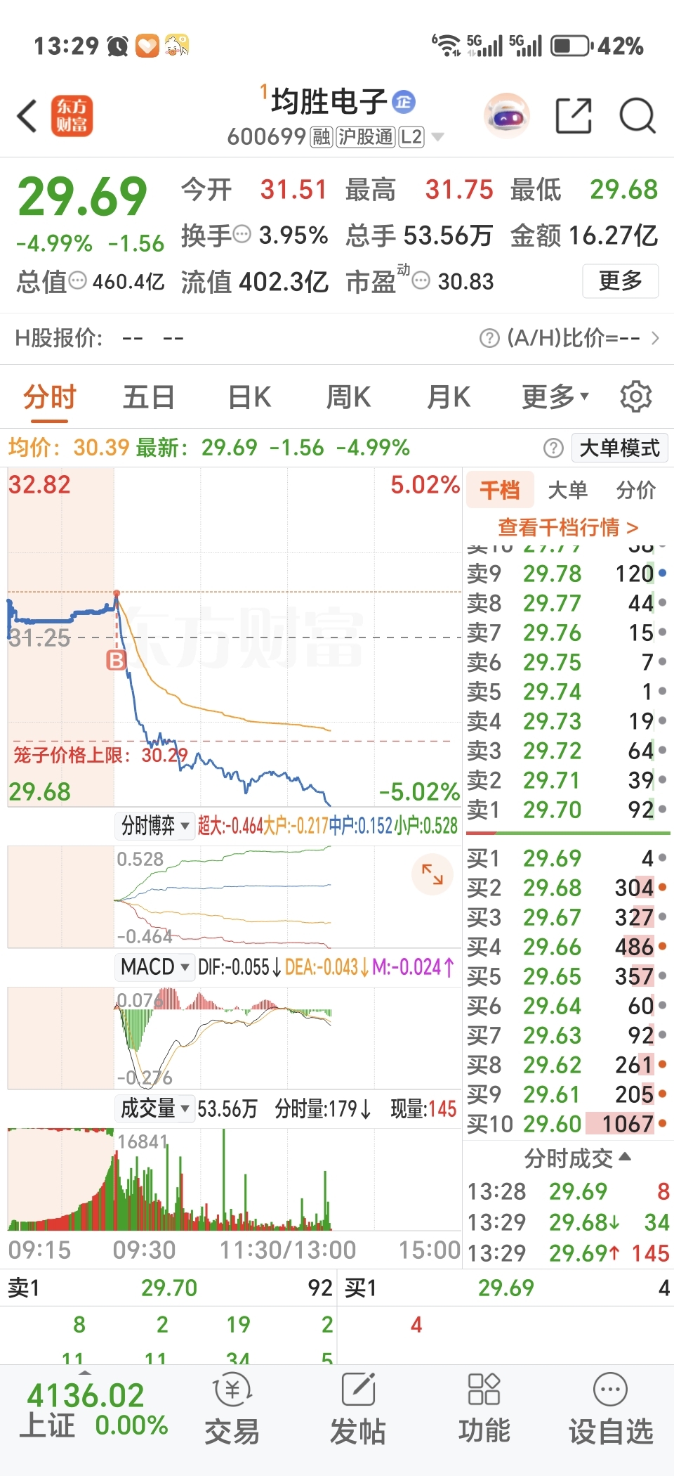 $均胜电子(SH600699)$ 最高点买入,买了之后。。。能不能放我出去?