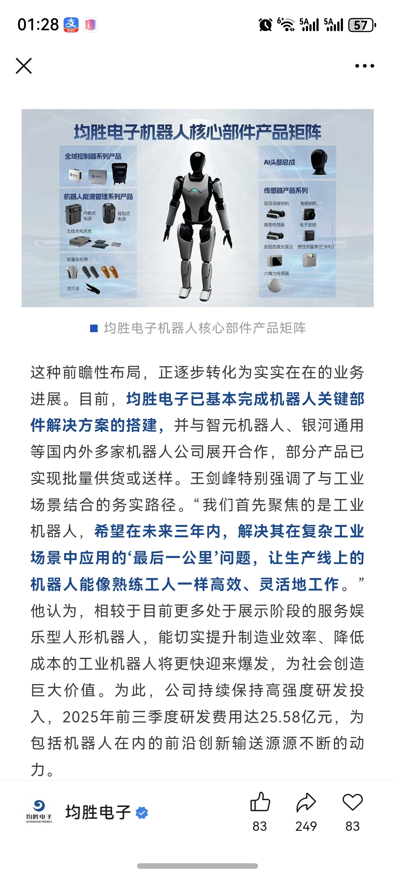 你也是银河通用关键供应商,战略合作伙伴,为什么大跌呢。你还供货智元机器人,特斯拉