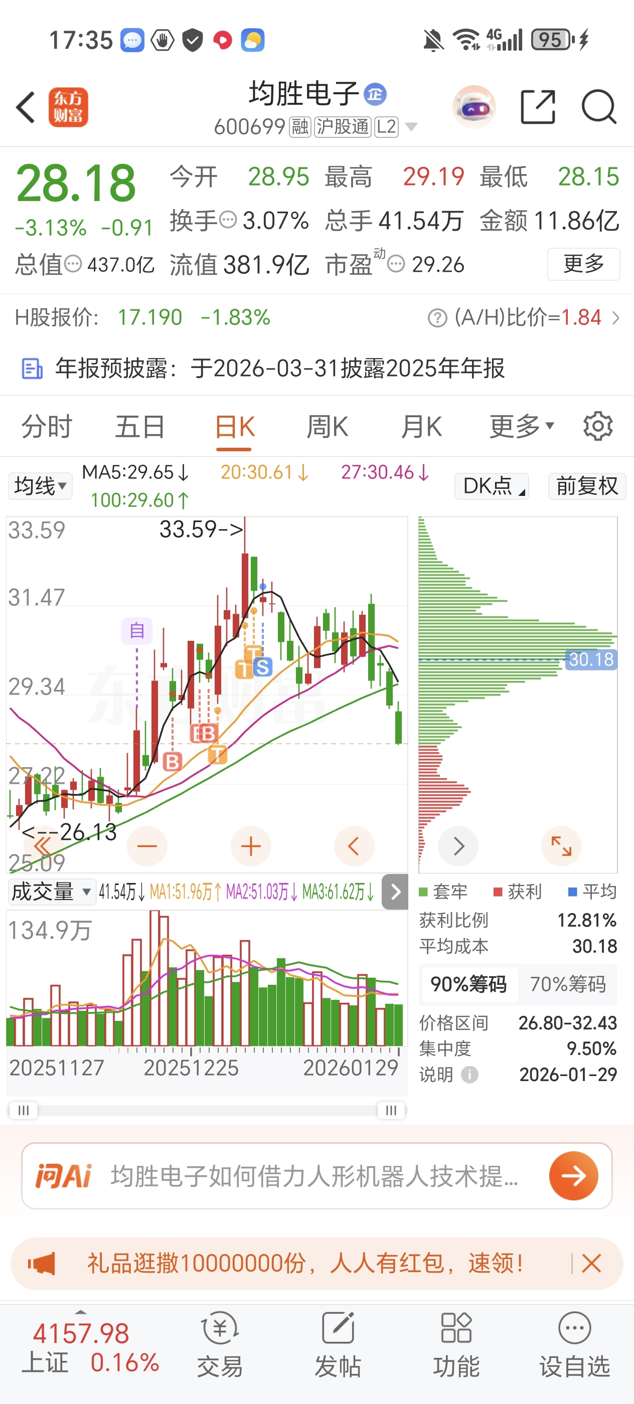 $均胜电子(SH600699)$ 当时这天就觉得不对劲幸好跑了