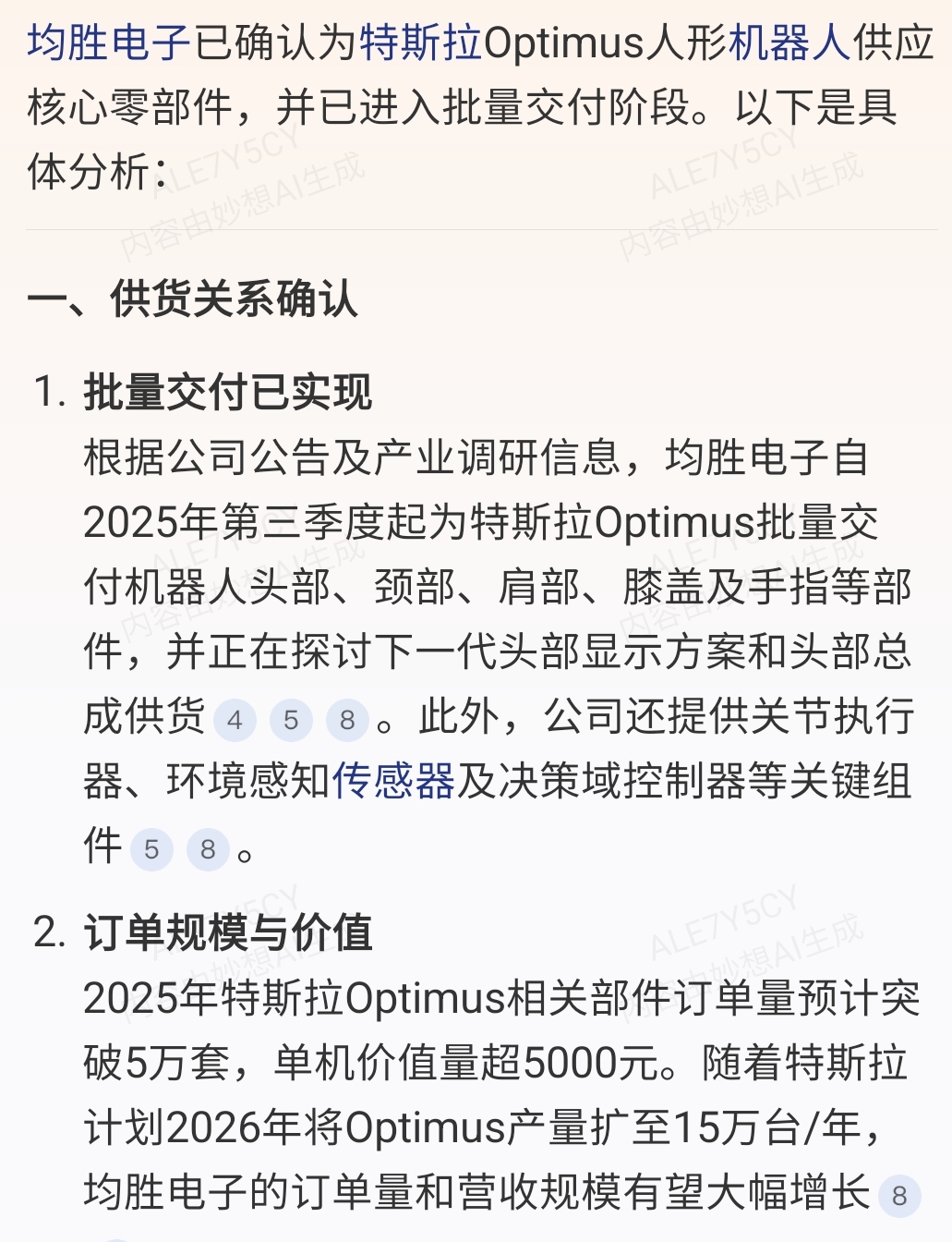 $均胜电子(SH600699)$ 不管如何,均胜还是正式供货特斯拉机器人,这一点就比那些送样测试的要好多了!至于占机器人配件比例多或少,这个要看前期合作产品的质量以及实现的性能,只能时间去去检验,26年是特斯拉机器人开始增量元年,未来几年应该生产数量只有多不会少!均胜应该也会受益!26年相信均胜能突破