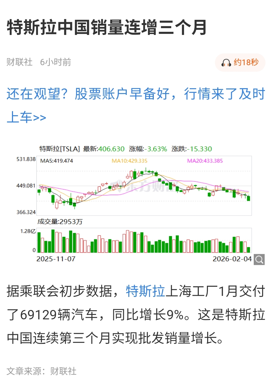据乘联会初步数据,特斯拉上海工厂1月交付了69129辆汽车,同比增长9%。这是特