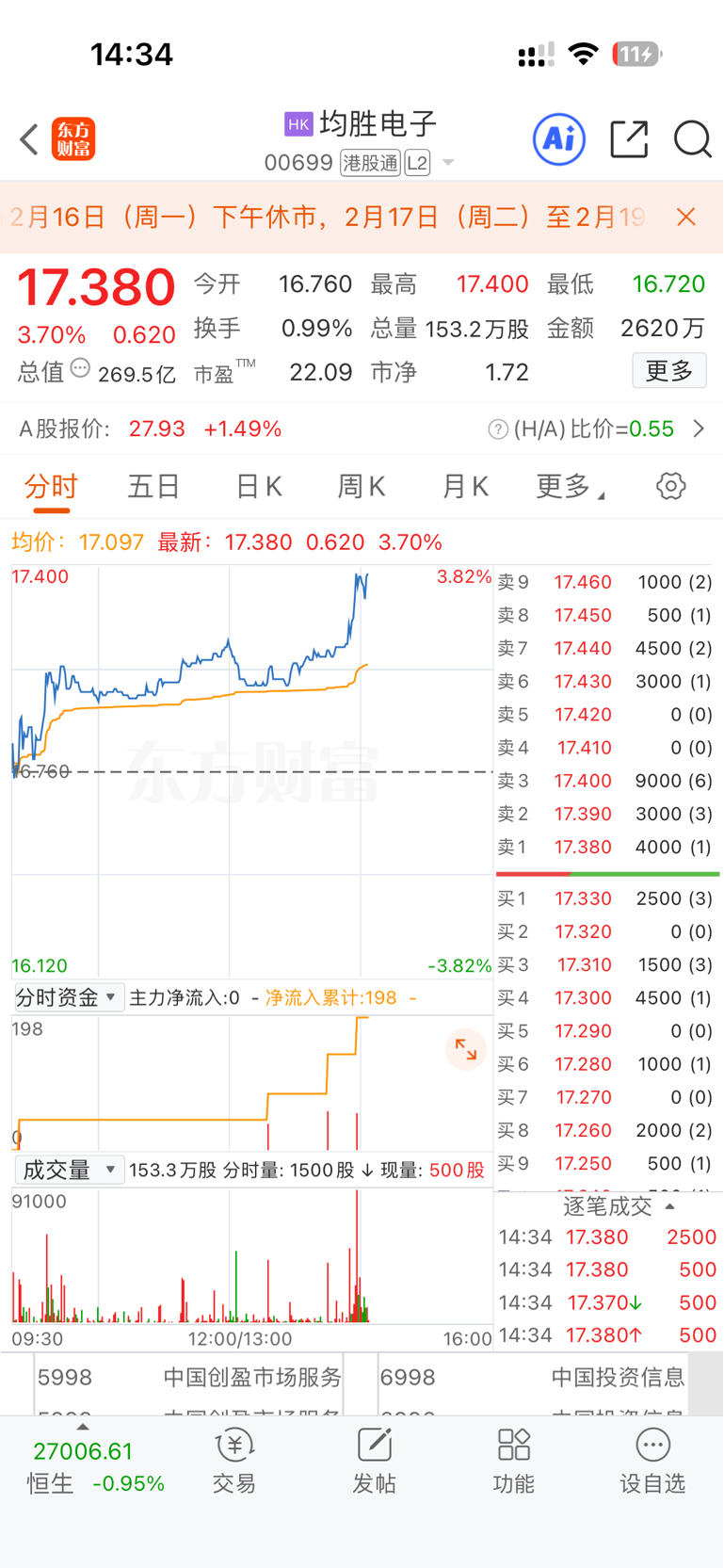 $均胜电子(SH600699)$ 看看港股,A股就是费物!!