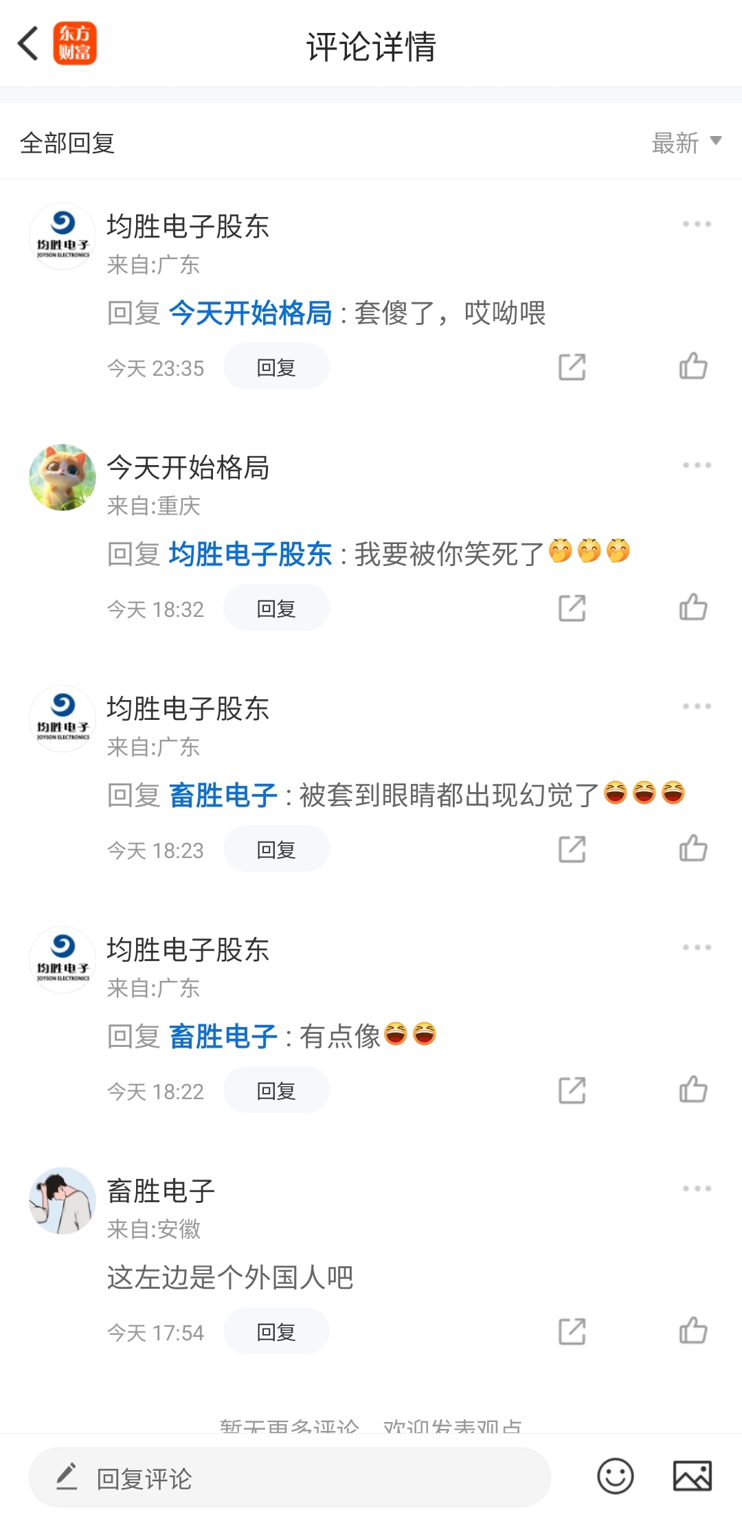 温馨提示: 1.根据《证券法》规定,禁止编造、传播虚假信息或者误导性信息,扰乱证券市场;2.用户在本社区发表的所有资料、言论等仅代表个人观点,与本网站立场无关,不对您构成任何投资建议。用户应基于自己的独立判断,自行决定证券投资并承担相应风险。《东方财富社区管理规定》