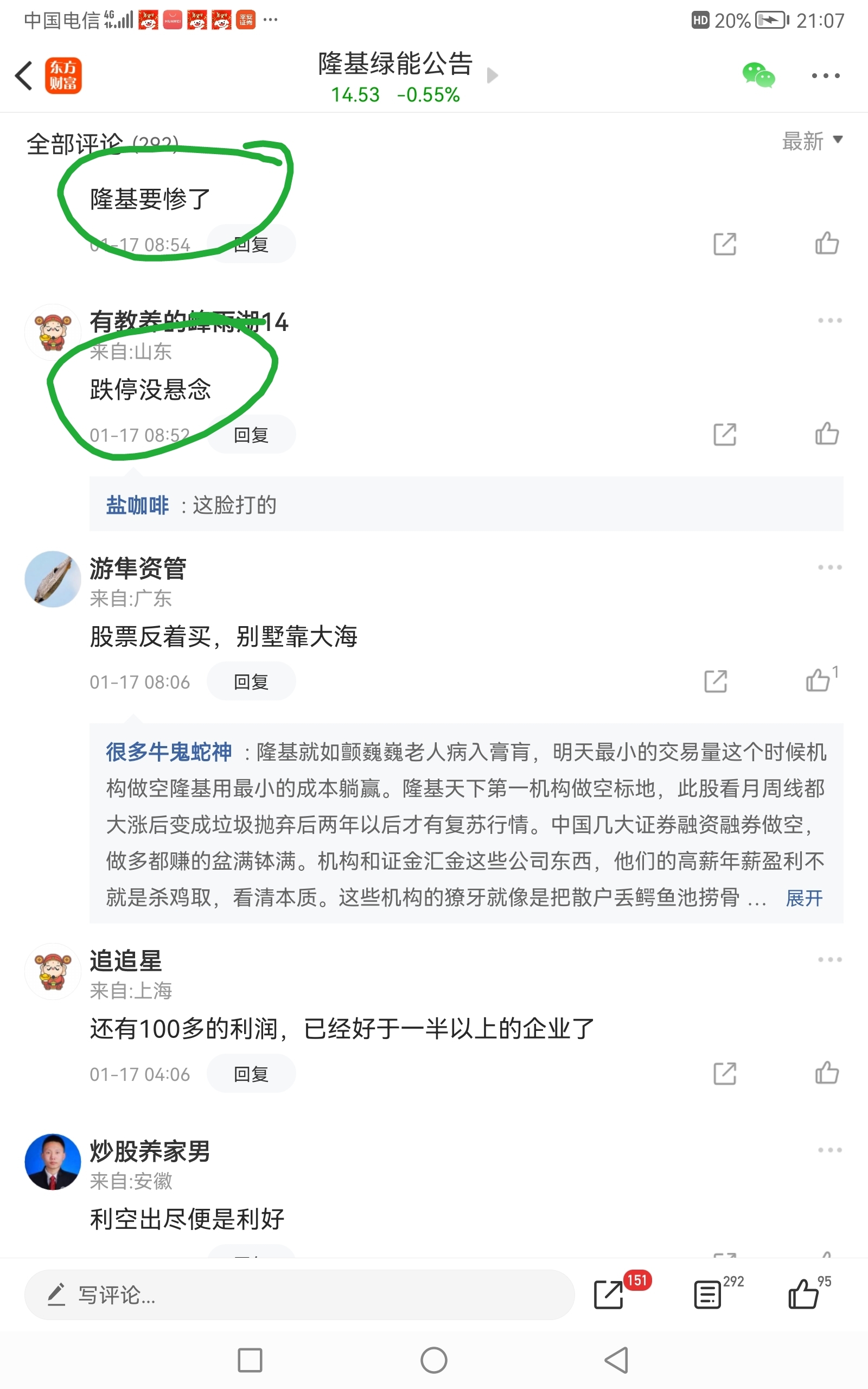 看看隆基绿能1月17日走,在亏损80亿的预告下,只跌一个点