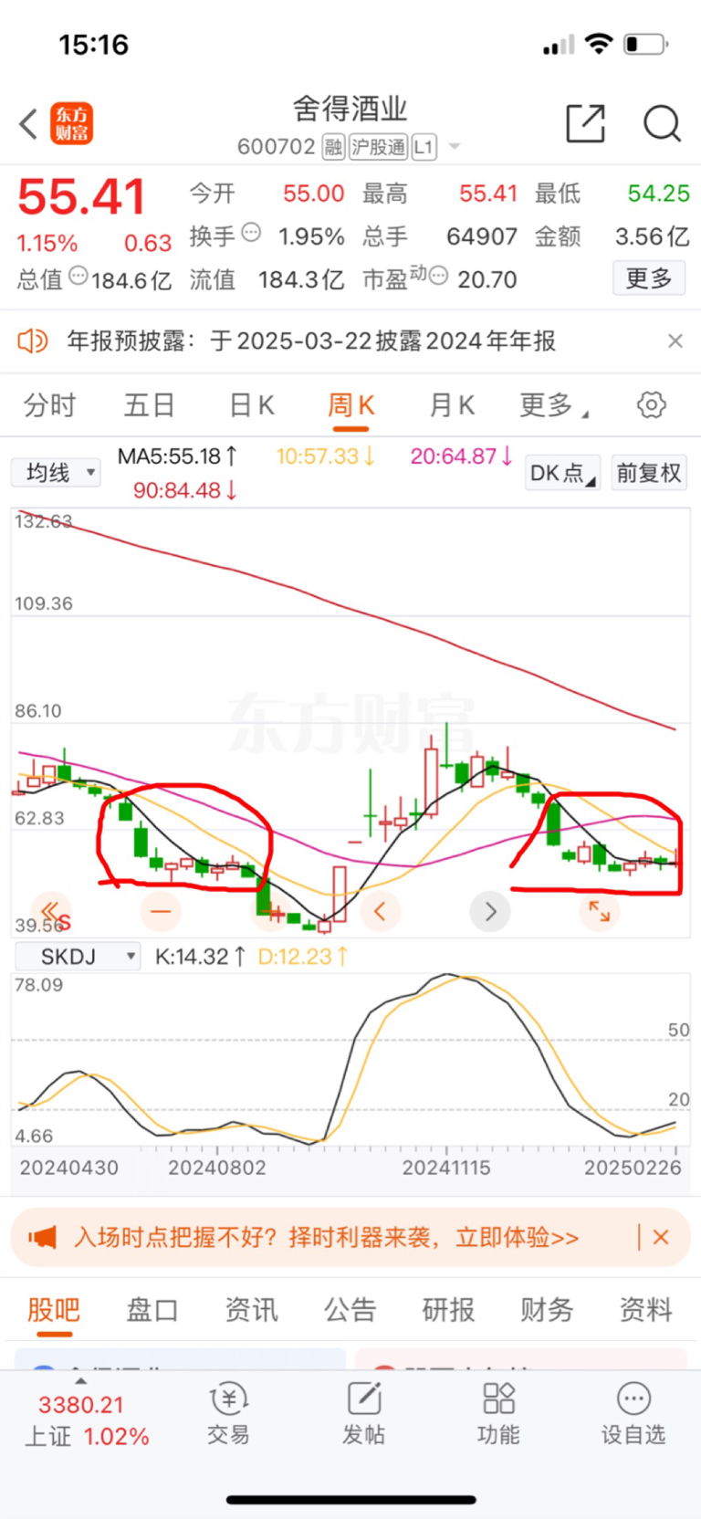 $舍得酒业(SH600702)$ 会不会向下。要不是大盘拖着,我估计早就下去了
