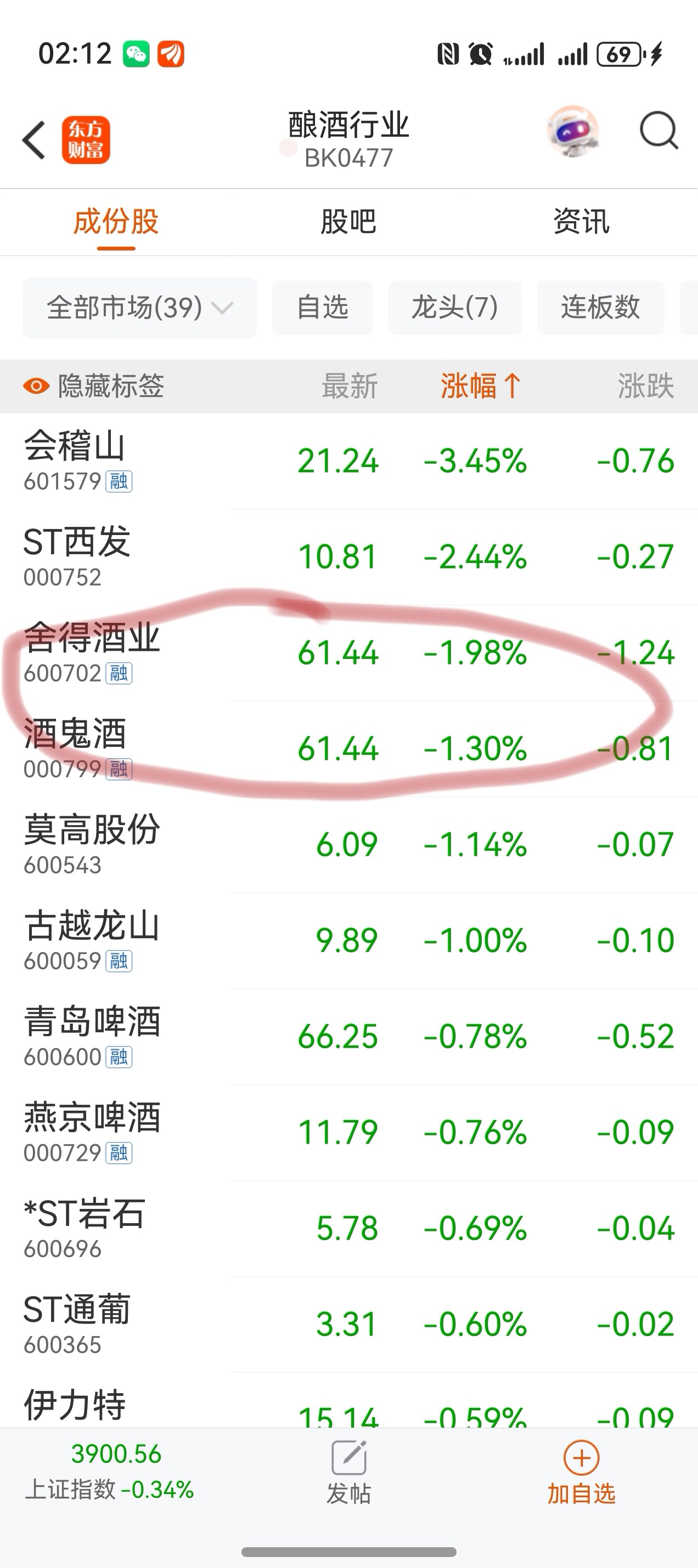 $舍得酒业(SH600702)$ 两个草包,价格一样了
