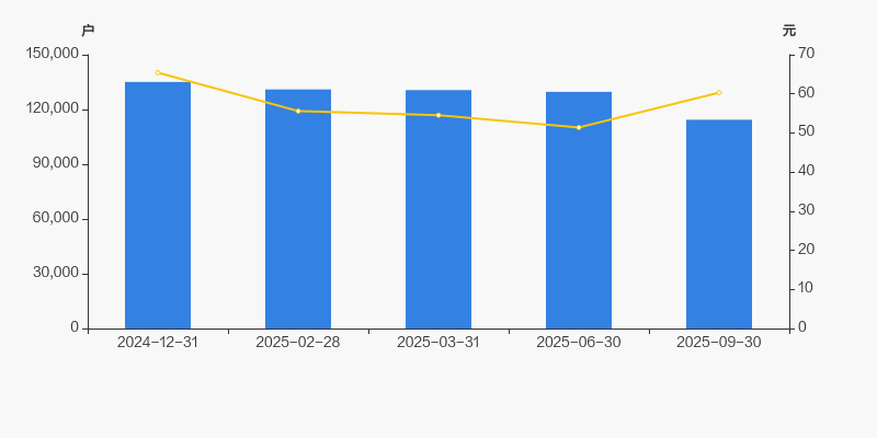 截至2025年9月30日,公司最新流通股本为3.33亿股。户均持有流通股数量由上期的2565股上升至2908股,户均流通市值17.54万元。