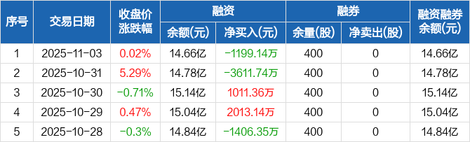 舍得酒业:融资净偿还1199.14万元,融资余额14.66亿元(11-03)