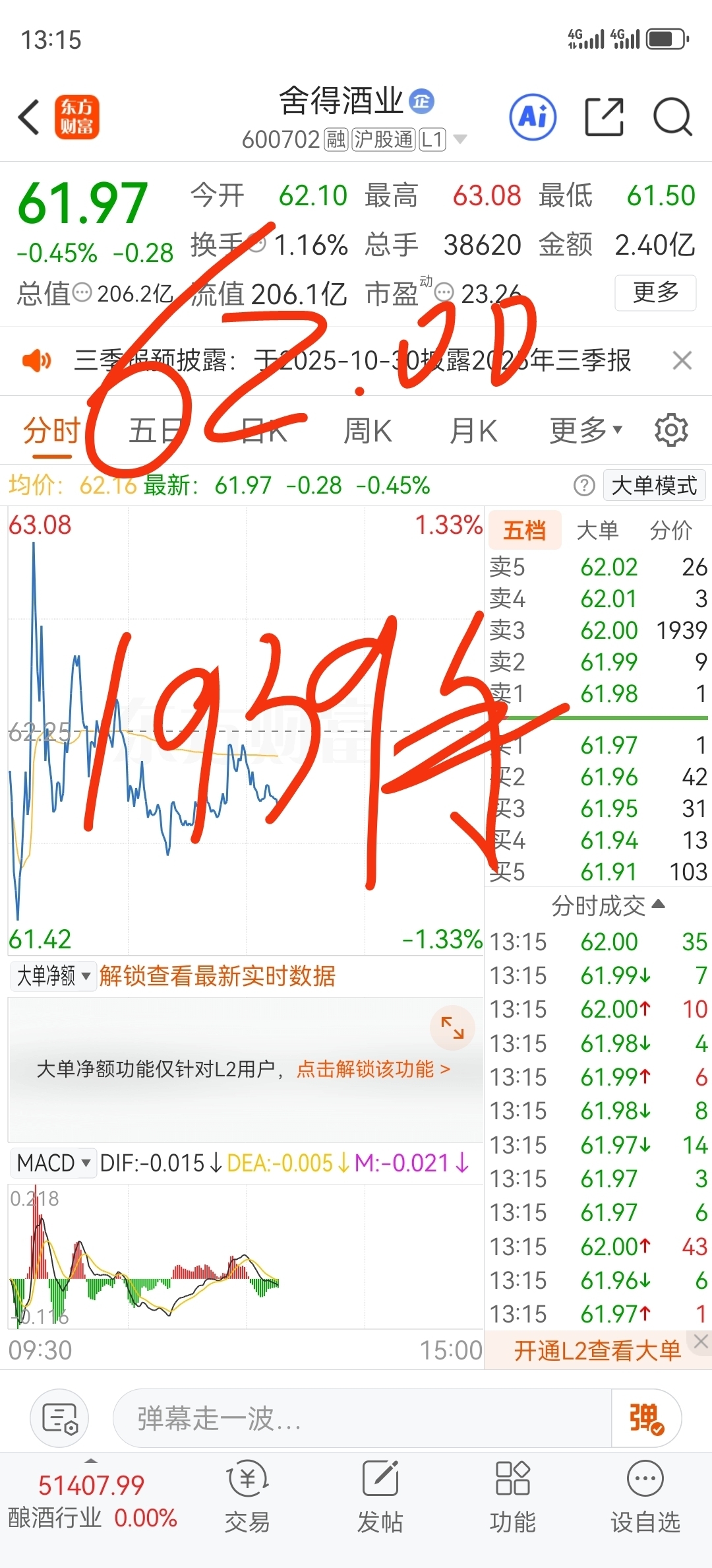 $舍得酒业(SH600702)$ 有人想让本6年股东在这个位置唱空,对于明天的黑周四,其实资金在今天已经给出了答案,即使今天板块大盘再红彤彤,它们也不拉升。